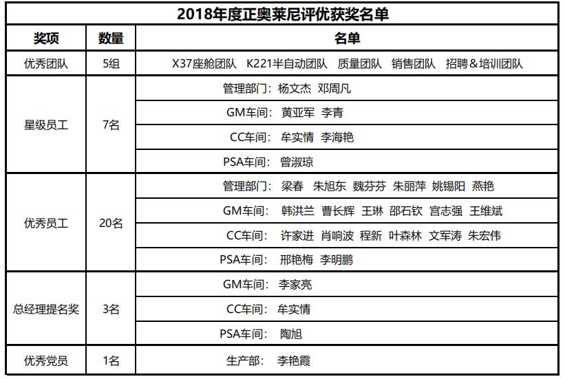 過去一年中,公司各車間各部門圍繞公司目标産量,努力工作,任勞任怨,勇於實踐,積極進取。在此過程中,很多部門和個人表現突出、貢獻卓著,成績斐然。我們通過層層篩選和最終的微信投票,評選出瞭一批優秀先進團隊和個人。現将2018年度評優結果予以公示。